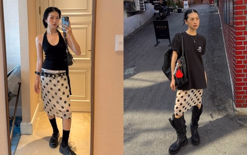 Chân váy chấm bi: Từ cổ điển đến năng động – chỉ một chiếc chân váy chấm bi cũng đủ ‘cân’ mọi phong cách.